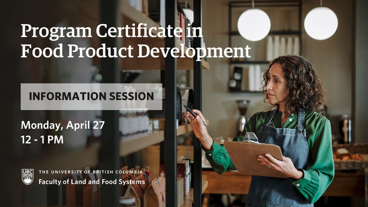 Join our Information Session on April 27 to learn about online training programs: https://www.landfood.ubc.ca/certificate/food-product-dev/